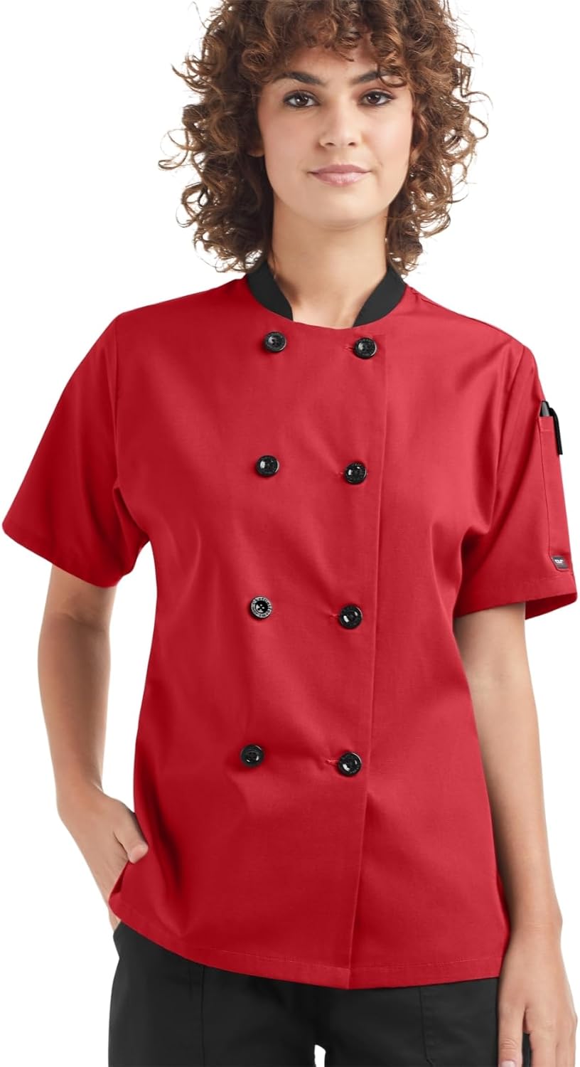 Experience the difference of chef wear designed specifically for women. This lightweight professional chef coat solves the common problems of overheating and poor fit that frustrate female culinary professionals. The breathable fabric keeps you comfortable during demanding kitchen shifts while the women-specific tailoring provides a flattering professional appearance. The coat features a convenient left sleeve pen pocket for thermometers and pens, reinforced button construction, and optimal length proportions designed for women's bodies. Unlike heavy traditional chef coats or baggy unisex alternatives, this coat gives you room for hips and curves while maintaining a sleek professional silhouette. The ultra-thin material breathes well in hot kitchens and poorly ventilated spaces, making it ideal for line cooks, prep cooks, and chefs who work long shifts. Sizing runs true to women's measurements with a tailored fit. For a looser fit, consider sizing up. The coat is machine washable with minimal shrinkage and colorfast properties for easy maintenance. Perfect for professional kitchens, culinary schools, restaurant work, catering, and home cooking. Quality construction meets affordable pricing, delivering reliable performance at an accessible price point. Designed for comfort, fit, and durability in demanding kitchen environments.