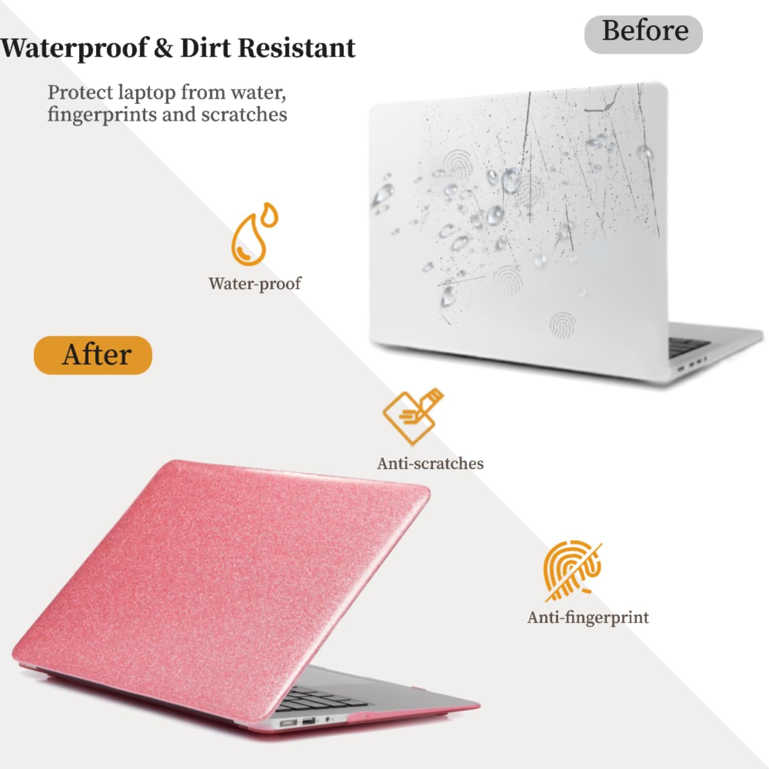• 【 Snap-on Design】Simple snap-on design, top and bottom cover are two-piece (separate shell) with snap-on design, easy to change to a new style, you can open and close it efficiently at any time, which can effectively reduce the risk of collision during the use of your laptop.