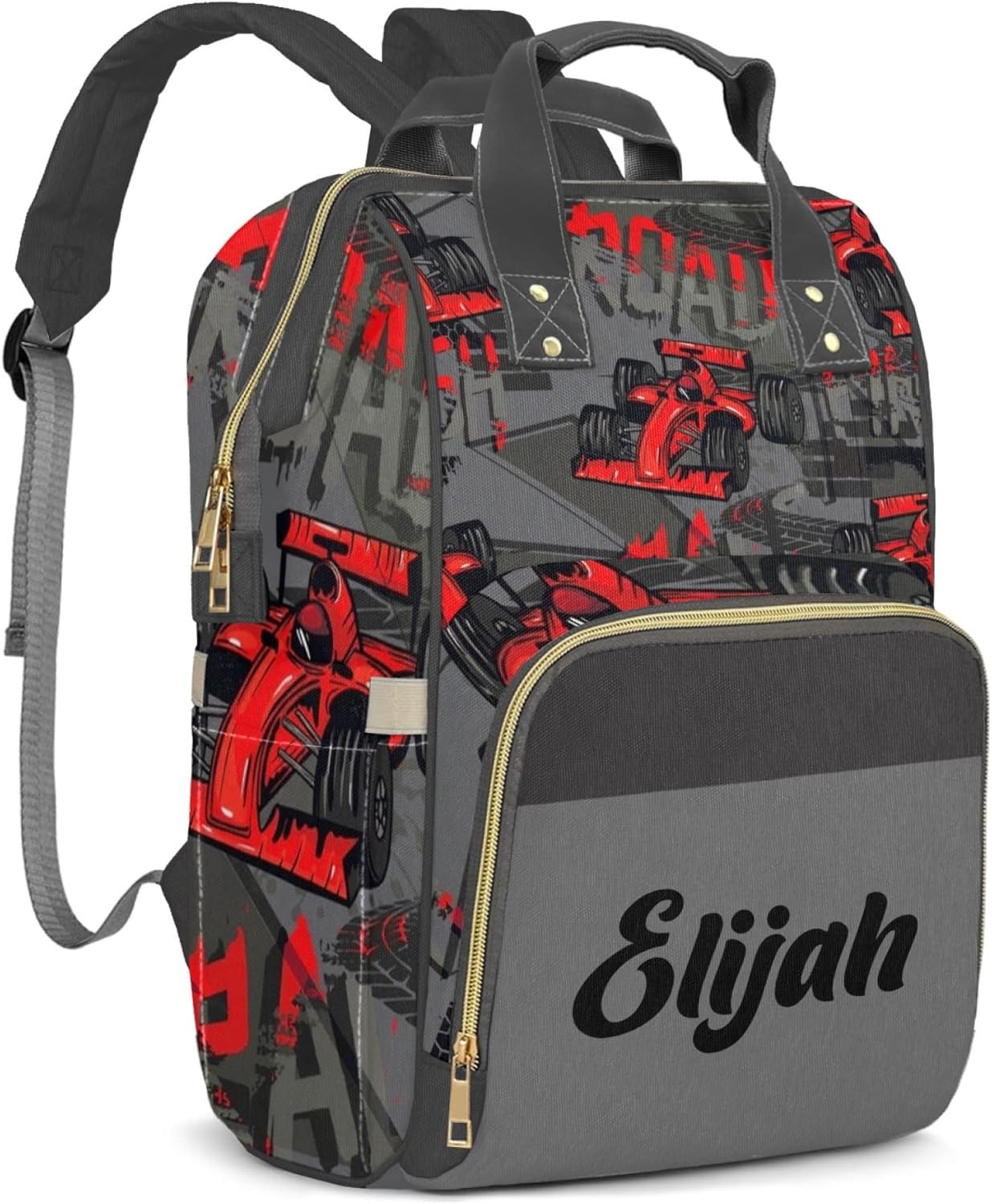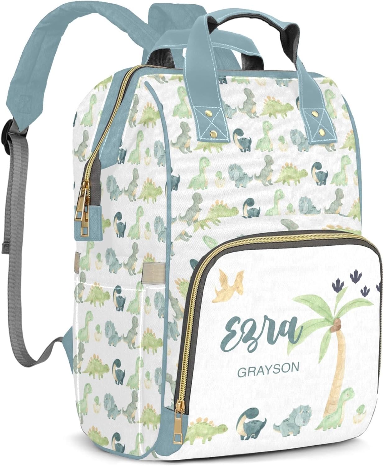 Spacious Multi-Compartment Diaper Bag: Our custom diaper bag backpack features a large main compartment with multiple pockets and dividers, 3 zipper compartments, and 11 small pockets for ample storage capacity. It provides plenty of space for diapers, wipes, bottles, clothes, and other baby essentials. Available in 2 sizes: Medium: 8.6" (L) x 6.2" (W) x 15.7" (H), Large: 10.6" (L) x 6.7" (W) x 17.3" (H). Insulated & Elastic Bottle Pockets: Our custom name diaper bags for boys and girls features insulated side pockets that keep baby bottles or snacks at the ideal temperature for hours. The elastic top and optimized size securely hold standard-sized bottles to prevent tipping and leaks. Additional stretchy side pockets offer convenient storage for umbrellas, water bottles, and more.Practical & Water-Resistant Fabric: The personalized baby diaper bag is crafted from waterproof nylon and Oxford cloth, offering exceptional durability and waterproof protection. Designed to withstand daily wear and tear, it wipes clean easily for low-maintenance care. The reliable material keeps your belongings safe and dry, making it an ideal baby bag for travel, outdoor adventures, trips, and picnics.Comfortable & Adjustable Straps: This personalized diaper backpack features adjustable padded shoulder straps and a breathable back panel for parents'maximum comfort. The sturdy top carry handle is metal-reinforced for extra durability. It also includes stroller straps for versatile carrying options. Smooth dual-zipper design allows easy opening, closing, and access to your essentials.Stylish & Customizable Design: Say goodbye to boring diaper bags! This fashionable and customizable baby fashion diaper bag makes the perfect gift for new moms, dads, or baby showers. We offer customized backpacks for boys and girls in a variety of designs that blend functionality with modern aesthetics.
