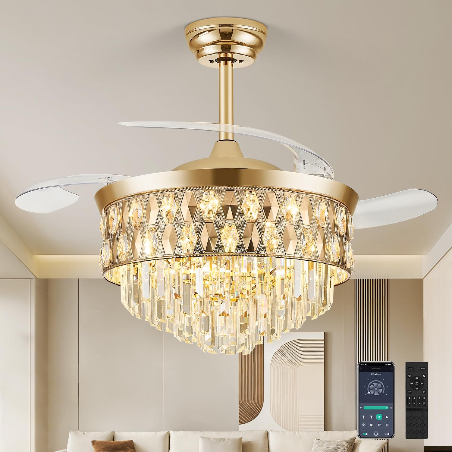 | Included Components | Crystal Ceiling Fan Light, Remote Control, Installation Accessories, Instruction Manual |
