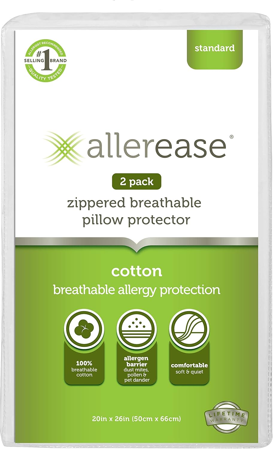 From the #1 best selling allergy bedding brand, AllerEase 100% cotton pillow protectors delivers the clean, healthy night's sleep that we all deserve. Featuring 100% cotton and an expertly-designed construction. Made of 100% breathable cotton, these pillow covers are soft to the touch and do not retain heat, so you can remain cool and comfortable all night long. Machine washable. AllerEase offers unmatched comfort, quality, convenience, and value for you and your family.