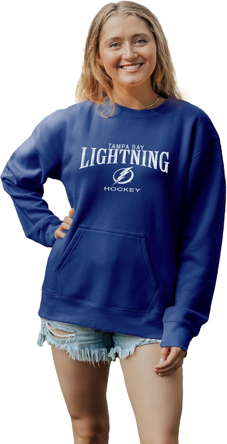 Proudly display your NHL team pride with this ladies pocket crewneck. It's durability will ensure a long lifetime of cheering on your favorite team. The high-quality graphics make for an extraordinary looking women's sweatshirt