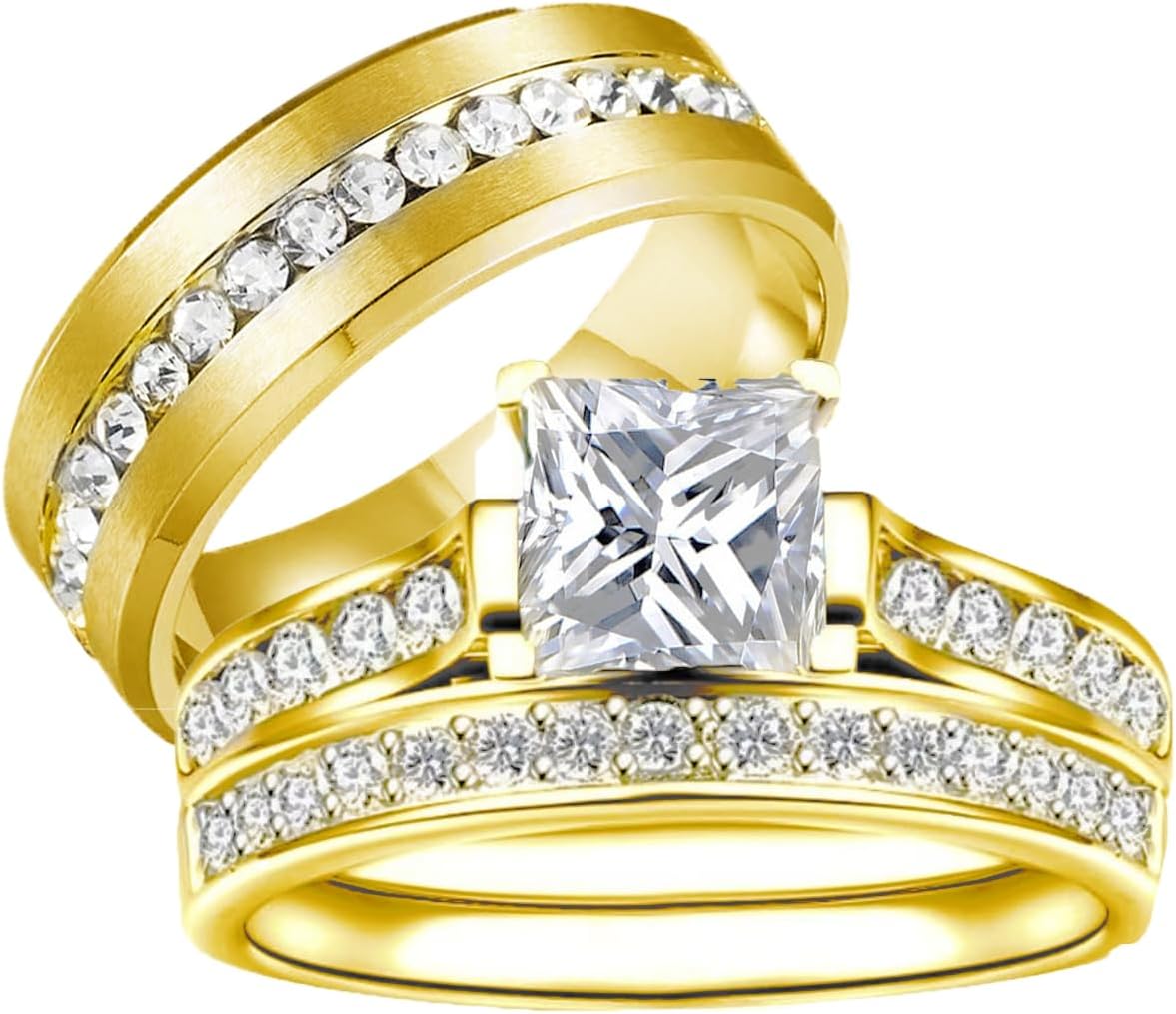 Moissanite Couple ring Sets Information: Jewelry Type: Couple Ring Set Contain:Dainty jewelry box Color: White gold/Yellow Gold/Rose GoldMaterial: Sterling /10k/14k /18k