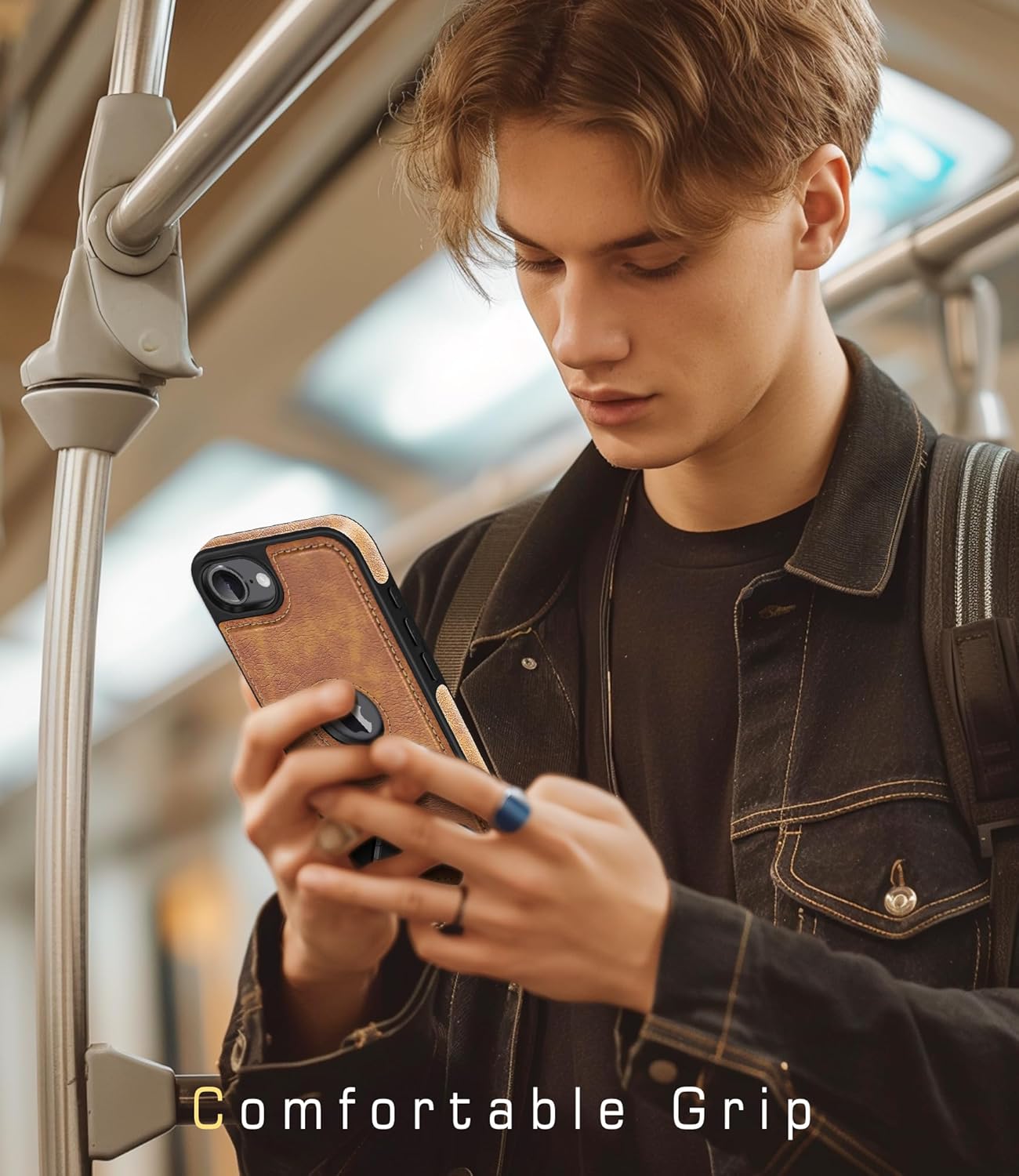 Fingic for iPhone 16e Case with Belt Clip Holster Case Slim Combo Shell with Kickstand+Magnetic Leather Case for iPhone 16e Case[Compatible with Magsafe][with 1 Screen/Camera Lens Protector]