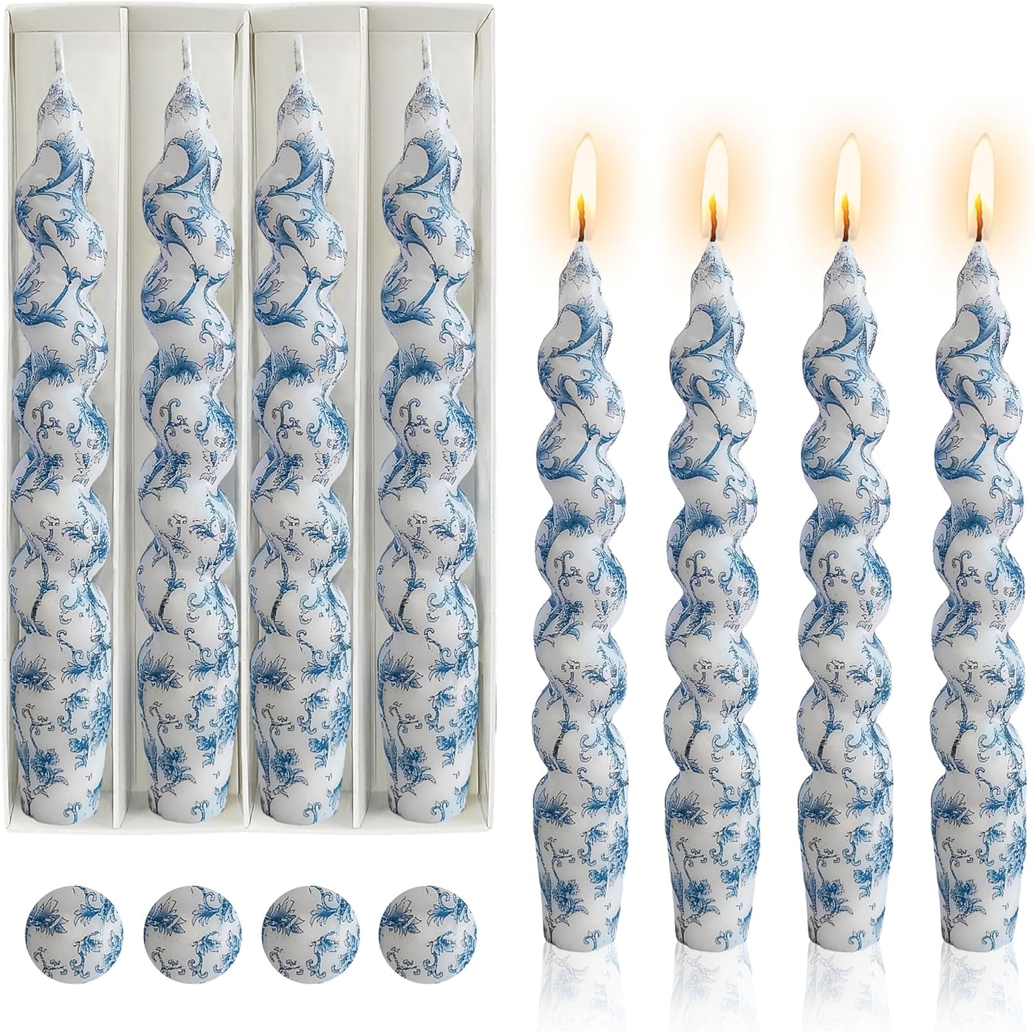 | Product Care Instructions | 1. Never leave burning candles unattended: Always extinguish candles before leaving the room or going to sleep. 2. Keep away from flammable materials: Ensure candles are placed on stable, heat-resistant surfaces and away from curtains, bedding, papers, and other flammable objects. 3. Trim wicks: Keep candle wicks trimmed to ¼ inch to prevent excessive smoking and flickering. 4. Avoid drafts: Place candles away from drafty areas to prevent uneven burning and potential accidents. 5. Use candle holders: Always use appropriate candle holders designed for taper candles to catch wax drips and prevent spills. 6. Keep out of reach of children and pets: Ensure candles are placed where they cannot be reached or knocked over by children or pets. 7. Monitor burning time: Do not burn candles for more than 4 hours at a time. Allow the candles to cool before relighting. 8. Extinguish properly: Use a candle snuffer or gently blow out the flame to extinguish candles. Avoid using water to put out candles. 9. Check for damage: Inspect candles for damage before each use. Do not use if the candle is cracked, chipped, or otherwise compromised. 10. Follow manufacturer instructions: Adhere to any additional safety guidelines provided by the manufacturer of the candles. |