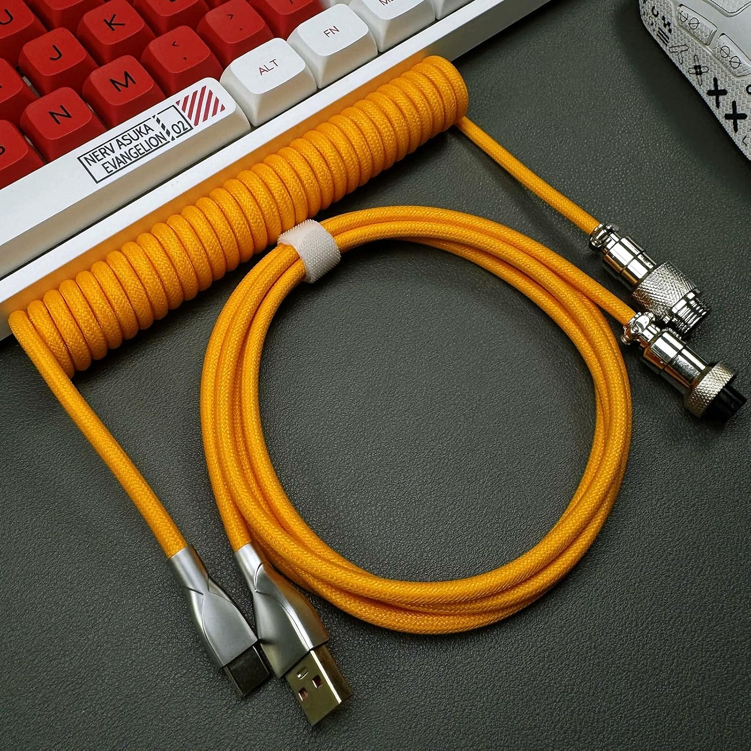 Specification Product Parameters Product Name: Mechanical Keyboard Coil Cable Product Material: Braided Thread+PU Interface type: Type-C to USB Cable length: approximately 1.8m (unstretched); 3 meters (stretch) Application: Compatible with all Type-C USB mechanical keyboards Color: As shown in the picture (can be used in combination with different colors) The package includes: 1 piece [2 segments of wire totaling 3 meters] DIY aviation plug keyboard data cable