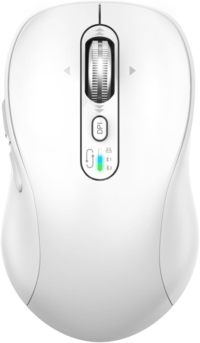 • 【Seamless Multi-Device Connectivity】Plug&Play, the INFINMIND Wireless Bluetooth Mouse features 2*Bluetooth channels and a 2.4GHz USB receiver, allowing you to effortlessly switch between 3 Devices with a single button click. The integrated White, Blue, and Green LED indicators confirm active connections for 2.4G USB, Bluetooth Mode 1, and Bluetooth Mode 2 respectively, ensuring consistent, reliable, and convenient multi-device connectivity. (The 2.4GHz USB receiver is stored conveniently under the Magnetic Surface Cover—simply remove it when needed. )